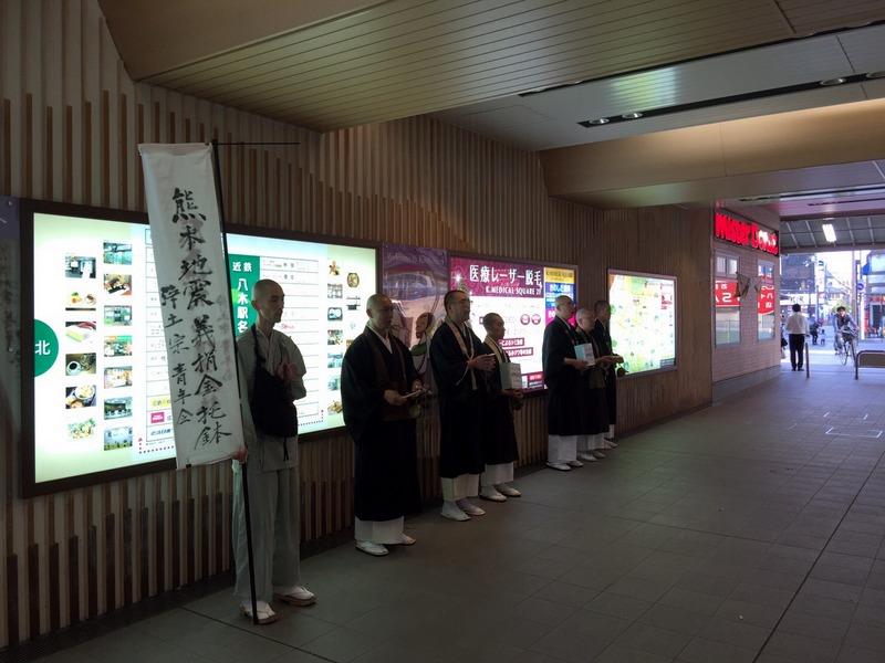 16日に続きまして4月17日(日)、近鉄大和八木駅にて、16時半より18時まで、熊本地震の義援金托鉢を行います。